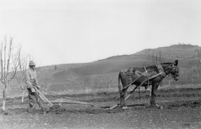 Die Felder wurden von Hand besät und mit Tieren wie Pferden oder Ochsen bearbeitet.